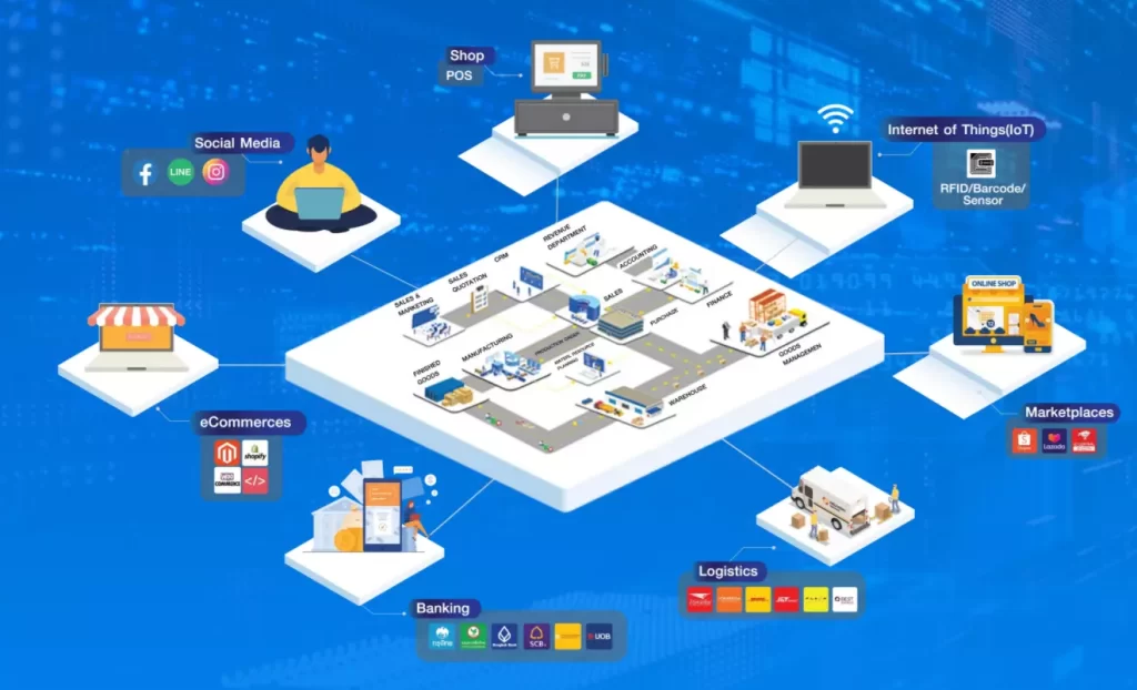 ERP คือ ซอฟต์แวร์ หรือระบบในการวางแผนทรัพยากรขององค์กร เป็นระบบการจัดการที่กว้างขวางซึ่งสามารถปรับปรุงกระบวนการทางธุรกิจทั้งหมดได้ การดำเนินธุรกิจอาจเกิดความยุ่งยาก และท้าทาย เมื่อทุกสิ่งที่ต้องการติดตาม ควบคุม และวางกลยุทธ์แยกออกจากกัน ระบบ ERP ทำให้การบริหารธุรกิจง่ายยิ่งขึ้น ด้วยการรวมข้อมูลจากทุกแผนกธุรกิจต่างๆ รวมศูนย์ไว้ในที่เดียว เช่น งานบัญชี การเงิน จัดซื้อ การจัดการสินค้าคงคลังและคลังสินค้า การผลิต การขนส่ง และการจัดการอื่นๆ อีกมากมาย สิ่งนี้ไม่เพียงแต่เร่งความเร็วในการรับข้อมูลเท่านั้น แต่ยังแสดงให้เห็นถึงความเชื่อมต่อของแต่ละฝ่าย ทำให้สามารถตัดสินใจได้อย่างเกิดประโยชน์สูงสุดต่อธุรกิจ